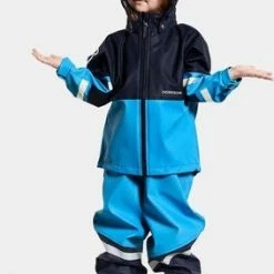 Et praktisk og funksjonelt sett med regntøy til barn fra kvalitetsmerket Didriksons. Waterman-regnsettet består av en god regnbukse og en ditto regnjakke, begge deler vind- og vanntette og med 4-veisstretch. Perfekt til utendørslek i ruskete vær!Regnjakken har justerbare håndledd og nedre kant, avtagbar hette, glidelås samt reflekser for sikkerhetens skyld.Regnbuksen har gode bukseseler og fotløkker som holder støvlene på plass og forhindrer vann fra å trenge inn. – Vind- og vanntette regnklær. – Sveisede sømmer.- Vannsøyle: 8000 mm.- PFC-fri vannavstøtning.