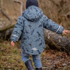 Vannavstøtende jakke fra CeLaVi med et dinosaurmotiv. Den har vanntetthet og en god pusteevne for optimal komfort. Jakken har reflekterende detaljer for økt synlighet i mørket. – Pusteevne: 8000g/m²/24h. – Vannsøyle: 10000 mm. – 100 % resirkulert polyester.