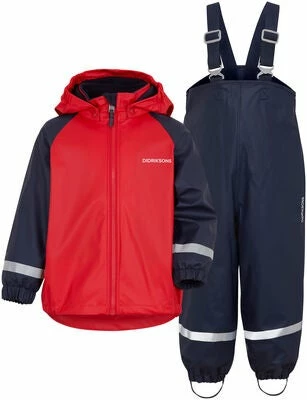Rainman er et funksjonelt regnsett fra Didriksons, perfekt for lek i alle typer vær. Regnjakken har et mykt fleecefôr i polyester, en avtakbar hette, glidelås med vindbeskyttelse, samt elastikk ved ermene og i nederkanten. Settet har også flere refleksdetaljer, slik at barnet ditt er synlig i mørket. Regnbuksen har justerbare bukseseler, elastikk i enden av bena og fotstropper som sørger for at den sitter trygt rundt skoene. Alt er laget av slitesterke materialer med sveisede sømmer, og settet har en vannsøyle på 8000 mm. Regnbuksen er også fôret. Et perfekt regnsett for regn- og ruskevær!