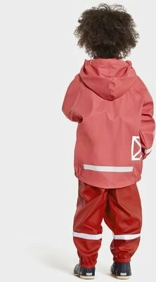 Vindtett, vanntett Slaskeman regnsett fra Didriksons med fireveis stretch. Det har trykknapper langs fronten og reflekser som kan ses fra alle vinkler. Settet har en strikk i håndledd og ankler, myk fleece innsiden av kragen og faste, justerbare bukseseler. Buksene kan justeres med trykknapper i sidene. – Belegg: 100 % PU. – Ytterstoff: 100 % polyester.