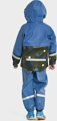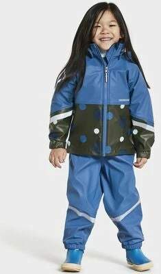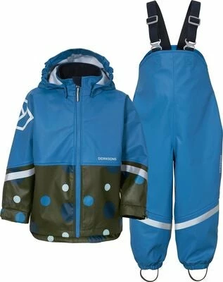 Vindtett, vanntett Waterman regnsett fra Didriksons med fireveis stretch. Det har refleksdetaljer som kan ses fra alle vinkler og en avtagbar hette med trykknapper. Settet har en glidelås på jakkens fremside, justerbare ermeslutter med trykknapper, faste, justerbare bukseseler og fleecefôr i kragen. Buksene kan justeres med trykknapper i sidene. – Belegg: 100 % PU. – Ytterstoff: 100 % polyester.