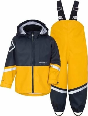 Et praktisk og funksjonelt sett med regntøy til barn fra kvalitetsmerket Didriksons. Waterman-regnsettet består av en god regnbukse og en ditto regnjakke, begge deler vind- og vanntette og med 4-veisstretch. Perfekt til utendørslek i ruskete vær!Regnjakken har justerbare håndledd og nedre kant, avtagbar hette, glidelås samt reflekser for sikkerhetens skyld.Regnbuksen har gode bukseseler og fotløkker som holder støvlene på plass og forhindrer vann fra å trenge inn. – Vind- og vanntette regnklær. – Sveisede sømmer.- Vannsøyle: 8000 mm.- PFC-fri vannavstøtning.
