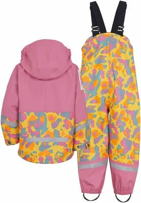 Waterman er et todelt regnsett med jakke og selebukser, fra Didriksons. Settet er både praktisk og funksjonelt, da det er vann- og vindtett, perfekt til barn som like allslags utendørslek! Buksene har seler og fotstropper, som holder støvlene på plass og forhindrer at vann kommer inn mellom bukse og støvel. Jakken er utstyrt med avtagbar hette med trykknapper, og har synlige reflekser på ryggen samt ved håndleddene. Mansjettene er justerbare med trykknapper, og jakken lukkes med glidelås. Innsiden av kragen er fôret med myk fleece.OBS! Regntøy fra Didriksons er generelt litt store i størrelsen.