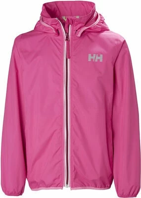 En regnjakke i stilren design fra Helly Hansen. Regnjakken er både vind- og vanntett, slik at barnet holder seg varm og tørr, selv i skikkelig ruskevær. Jakken har strikk både i nederkanten og ved håndleddene, for best mulige passform. En brodert Helly Hansen-logo pryder jakkens fremside.