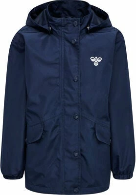 Reva fra Hummel, er et slitesterkt regnsett som er laget av vanntett materiale. De klassiske Hummel-pilene er å se på både regnjakka og regnbuksene, og er laget av refleksmateriale for sikkerhetens skyld. Hetten på regnjakka er avtakbar, og løsner enkelt om barnet ditt skulle komme til å bli sittende fast i noe. Regnbuksene har strikk i midjen. Jakken har både glidelås og knapper, for så sikre full vannresistens. – Vannsøyle på 8000 mm. – Sveisede sømmer.