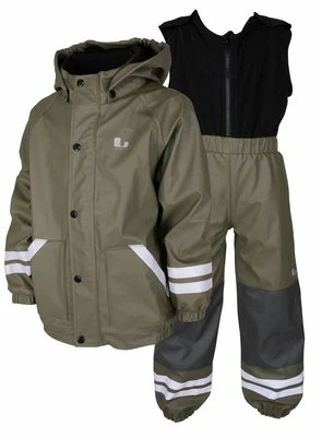 Vanntett, fôret regnsett fra Lindberg i PU med reflekser. Det har en avtakbar hette og fotstropper. Settet har sveisede sømmer og lommer. Perfekt på våte dager. – Vannsøyle 8000 mm