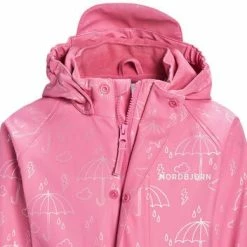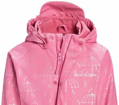 Brännö er en fin regndress fra Nordbjørn, perfekt for barn som elsker utelek. Den har strikk i håndleddene og anklene, og lukkes enkelt med trykknapper og glidelås. Dressen har avtakbar hette og refleksdetaljer på ermer og bein, for sikkerhetens skyld. En slitesterk regndress med varmende fleecefôr, som holder barnet ditt tørt uansett vær!