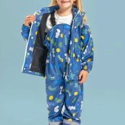 Jylland er et praktisk regnsett fra Norbjørn. Settet består av en bukse med fotstropper og justerbare bånd som holder dem på plass, og en vannresistent jakke med avtakbar hette, reflekspartier og tøystrikk i håndleddene. Et perfekt klessett til ruskevær!