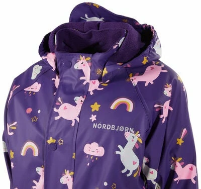 Dette er en flott og funksjonell regndress fra Nordbjørn, som vil holde barnet ditt tørr og varm på regnfulle dager! Regndressen er vind- og vanntett, og fôret med herlig fleece. Regndressen er utstyrt med sveisede sømmer, avtakbar hette og refleksdetaljer. Ikke la regn og ruskevær sette en stopper for morsom utelek!
