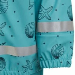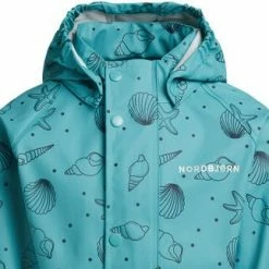 Koster regnsett fra Nordbjørn, for lek i allslags vær. Plagget er vanntett, har sveisede sømmer og en vannsøyle på 8000 mm (2000 mm etter fem vasker). De justerbare bukseselene holder buksene på plass. – 100 % PU.