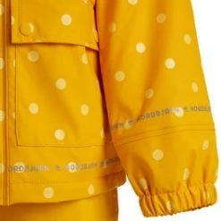 Öckerö fra Nordbjørn er et fôret regntøy, for lek i all slags vær. Regnjakken har et mykt fleecefôr, en avtakbar hette, glidelås med vindbeskyttelse og strikk ved ribbekantene. Regnbuksen har et mykt fleecefôr, strikk i enden av bena, samt fotholdere som sørger for at buksen sitter godt rundt skoene.