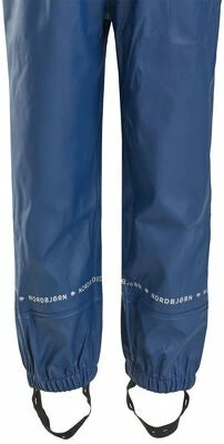 Vind- og vanntette Sälvik regnbukser fra Nordbjørn med refleksdetaljer , slik at barnet ditt er synlig i mørket. De har sveisede sømmer og justerbare bukseseler. Regnbuksene har fotstropper. Perfekte til herlig utendørs lek i regnvær. – Maskinvask 40°C. – 100 % PU.