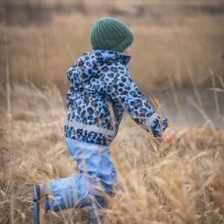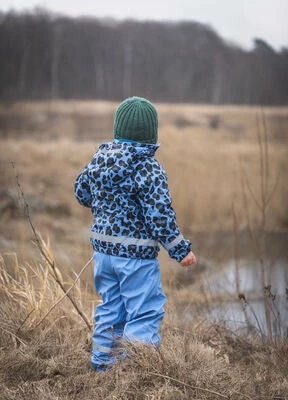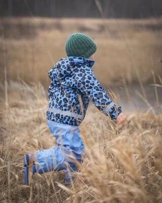 Skagen fra Nordbjørn, et funksjonelt regnsett for lek i all slags vær. Regnjakken har et mykt fleecefôr, en avtakbar hette, glidelås med vindbeskyttelse, elastikk ved ermene og i nederkant, samt flere refleksdetaljer slik at barnet ditt kan sees i mørket. Regnbuksen har justerbare bukseseler, elastikk i enden av bena og fotstropper som sørger for at buksene sitter trygt rundt skoene. Alt er laget av et slitesterkt materiale med teipede sømmer, med en vannsøyle på 8000 mm. Regnbuksen har et varmende for av fleece. Et perfekt regnsett for regn og ruskevær!