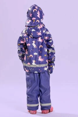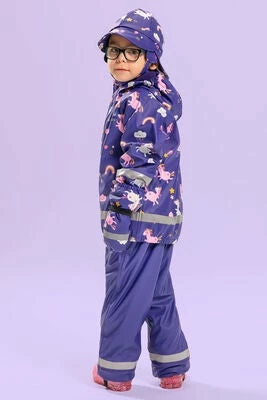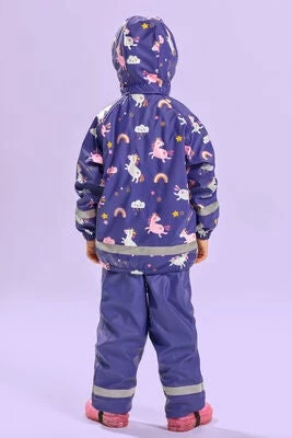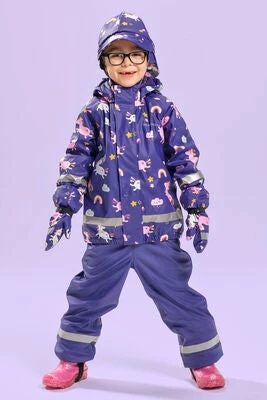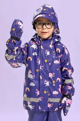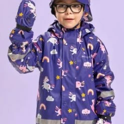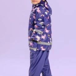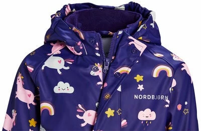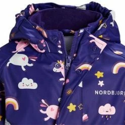 Skagen fra Nordbjørn er et funskjonelt regnsett for lek i allslags vær. Regnjakka har et mykt fôr i fleece, en avtakbar hette, glidelås med vindlås, tøystrikk i håndleddene og nedre kant, og flere refleksdetaljer, slik at barnet ditt synes godt i mørket. Regnbuksene har fleecefôr, justerbare bukseseler, tøystrikk i anklene, og fotstropper som sitter godt rundt skoene. Hele settet er laget av et slitesterkt materiale, og har teipede sømmer og en vannsøyle på 8000 mm.