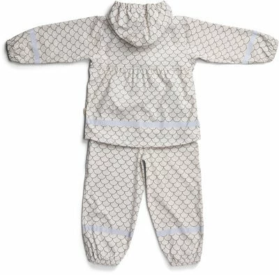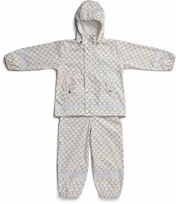 Et godt og funksjonelt sett med regntøy for barn, fra stilsikre Petite Chérie. Settet består av regnjakke og regnbukser, som begge to har sveisede sømmer, tøystrikk i henholdsvis håndledd og ankler, samt en vannsøyle på 8000 mm. Regnjakken åpnes og lukkes enkelt med glidelås og trykknapper, og har en avtagbar hette. Regnbuksene har justerbare bukseseler, som er lette å kneppe opp. – Vannsøyle: 8000 mm (5000 mm etter tre vask).- Sveisede sømmer.- Avtagbare hette.- Refleksdetaljer.