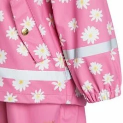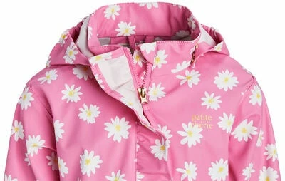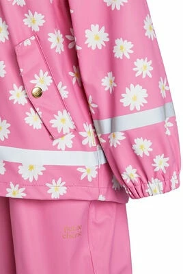 Vannavvisende, funksjonelt Niki regnsett fra Petite Chérie Atelier i PU med en refleksdetalj. Det har fotstropper og en avtagbar hette. Perfekt til regndager.