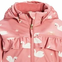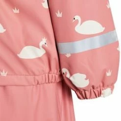 Et fint og varmt regnsett for barn fra Petite Chérie Atelier. Både regnjakken og regnbuksen er foret med herlig polyester-fleece, har sveisede sømmer, samt strikker i ermer og ankler. Jakken har dekorative blonder over brystet, åpnes og lukkes enkelt ved hjelp av hellang glidelås og har en avtakbar hette. Buksen har et lag i fleece og åpnes med glidelås for enkel av og påkledning. Dette søte settet sørger for at barnet ditt holder seg varmt og tørt under kalde og våte høst- og vinterdager.
