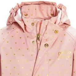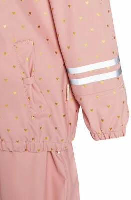 Cleo, et fint regnsett med et søtt mønster fra Petite Chérie. Regnsettet passer for utendørs leker, uansett hvordan været er. Settet har en avtagbar hette, refleksdetaljer og fotstropper på buksen. Buksen har justerbare seler. Settet er helt vanntett med sveisede sømmer, noe som gjør det perfekt for regnværsdager på våren og sommeren.