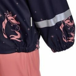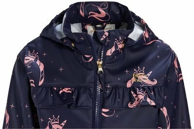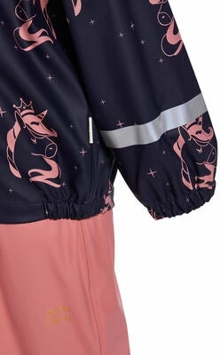I dette praktiske og søte regnsettet fra Petite Chérie, kan barnet ditt plaske rundt i regnet uten å bli bløt. Tøystrikk i fot- og ermeender forhindrer regnet i å trenge seg inn i regntøyet. Jakken har en avtakbar hette med skjerm. Regnbuksen sitter godt på plass med justerbare bukseseler. Med reflekser på ermer og ben, synes barnet ditt godt også i mørket.- Vannsøyle: 8000 mm (2000 mm etter fem vask)
