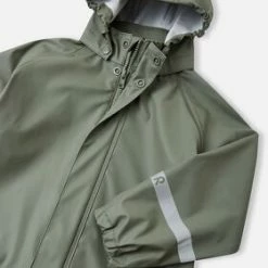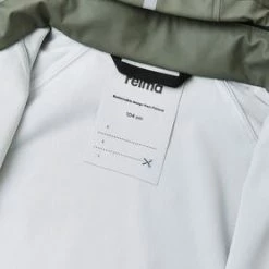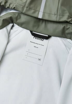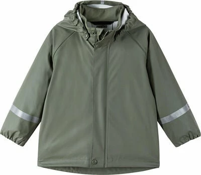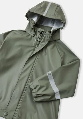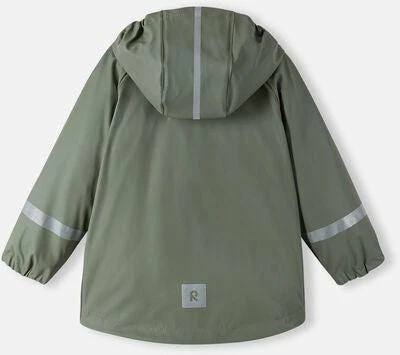 Vanntett, funksjonell, grønn Lampi regnjakke fra Reima med sveisede sømmer. Den har integrerte reflekser. – polyester, polyuretan.