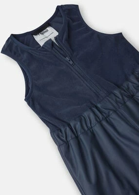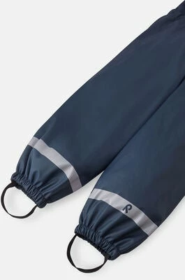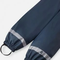 Fine Loiske regnbukser fra Reima med sveisede sømmer slik at vann ikke trenger inn. De har avtagbare fotstropper og et fleecefôr for varme og komfort. – Vannsøyle 10000 mm. – 100 % polyester.