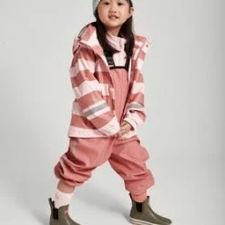 Vindtett, vanntett, rosa Vesi regnjakke fra Reima i resirkulert polyester med en vanntett, avtakbar hette. Den er PVC-fri, funksjonell og fleksibel. Den har sveisede sømmer og reflekterende detaljer. Jakken har en lang glidelås foran. Vaskes på vranga. Vask separat. Perfekt til herlig utendørs lek i regnvær.