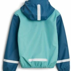 Et vind- og vanntett regnsett fra Tretorn. Sunshower-settet har ei jakke med trykknapper, en avtagbar hette med et godt fôr i polyester, og synlige reflekser i alle retninger. Regnbuksa har bukseseler og forsterkninger på knærne og i baken, og elastiske fotstropper. Sømmene er sveisede. Perfekt på regntunge dager. – Vannsøyle 8000 mm