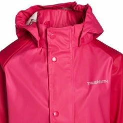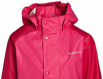 Et klasssk regnsett fra True North. Settet er helt vanntett, og ypperlig egnet til uteleken. Klærne har mange refleksdetaljer for sikkerhetens skyld. Regnbuksene har fotstropper.