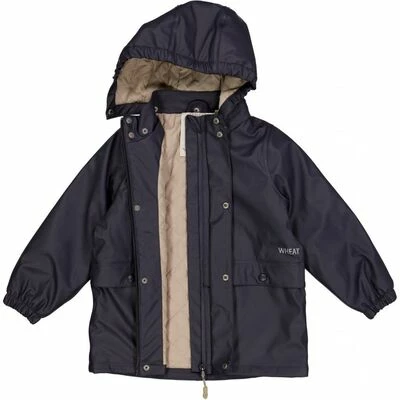 Fôret regnjakke fra Wheat. Denne fine og funksjonelle regnjakken er vanntett, med sveisede sømmer og vannsøyle på 9000. Jakken er i en litt lengre modell og har en stilren design som passer til alle situasjoner. Det myke pilefôret på innsiden av jakken varmer godt. Den har avtagbar hette, refleksdetaljer, og lommer på fremsiden. Denne fôrede regnjakken holder barnet ditt varmt og tørt når det er regn- og ruskevær!